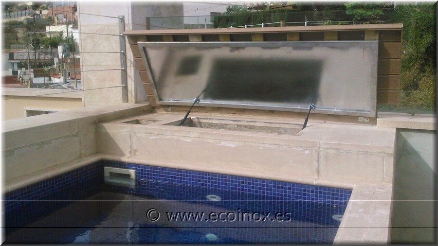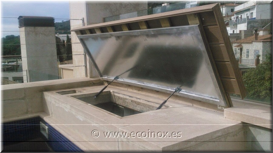Recentment, ECOINOX ha instal·lat una nova TAPA DE MOTOR de piscina. Aquest innovador model de tapa està format per llistons de tarima de fusta composta, dos braços hidràulics i una maneta inoxidable.