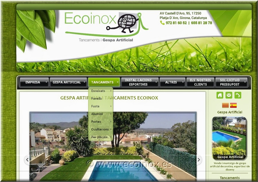 Tingueu present, però, que instal·lem altres tipus de tancaments i, també, gespa artificial, tarimes, pèrgoles, etc. Teniu tota la informació en la nostra web www.ecoinox.es
