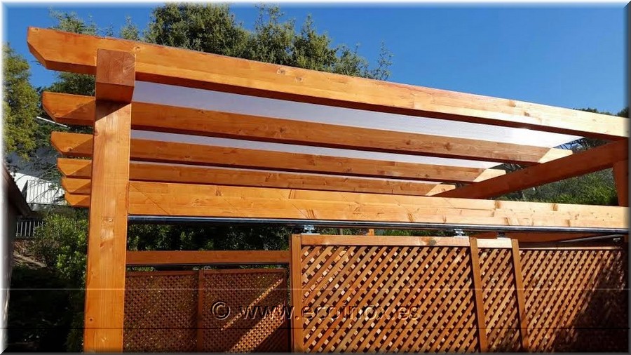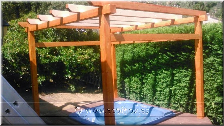 pèrgola de fusta d'avet laminat; amb 2 pilars a la part frontal, 8