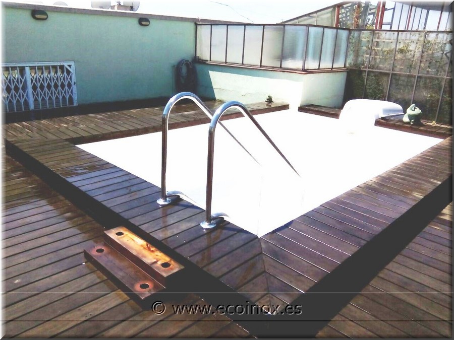També hi ha instal·lat 45 m2 de tarima flotant d' IPE. L'IPE és una fusta natural tropical, sòlida i rígida.