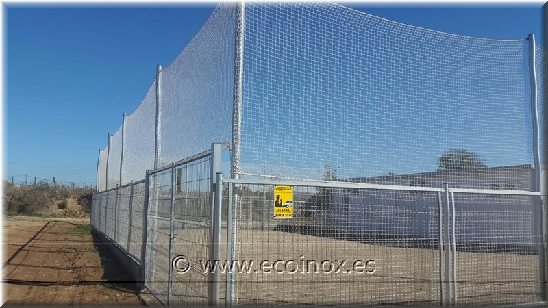 Aquesta malla va subjectada amb pals metàl·lics galvanitzats de 60 mm de diàmetre col·locats cada 5 metres