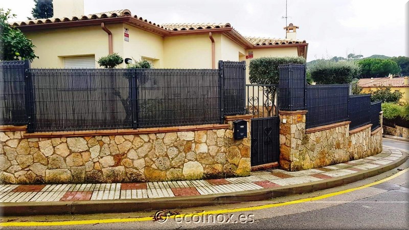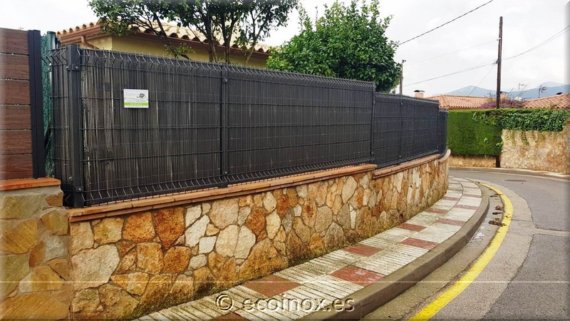 panell rígid oxiron de 1m d'alçada sobre mur esglaonat amb vímet de pvc del