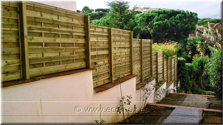 Col·locació de tanca gelosia de fusta de pi tractat a