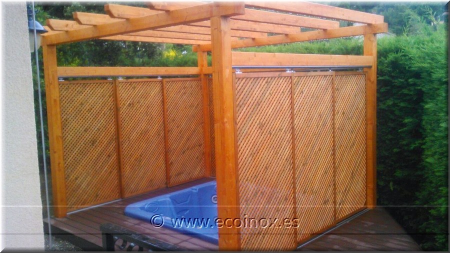 una gelosia de fusta de pi tractat amb màxima protecció.