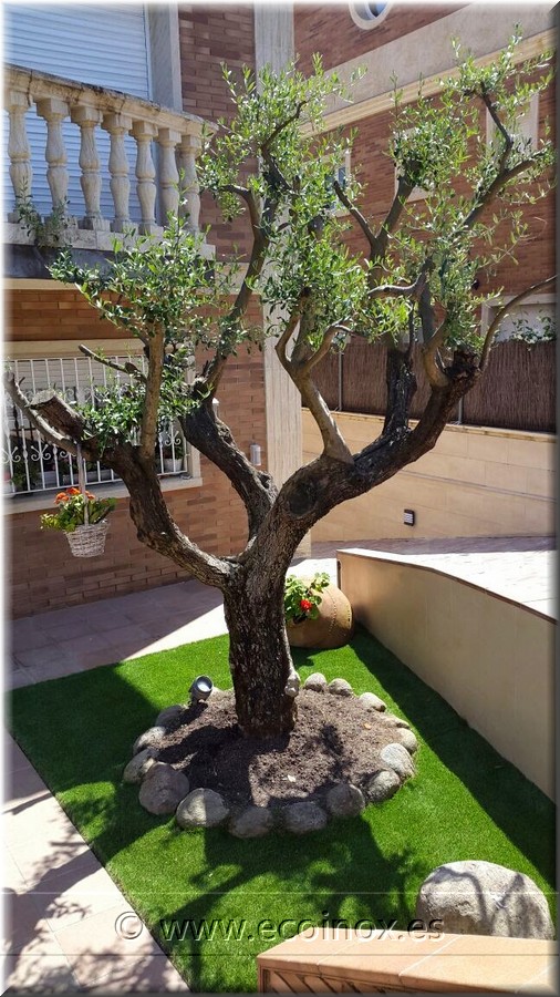 A l'hora d'instal·lar la gespa, es poden fer diferents tipus d'acabats. En aquest cas, se'ns ha demanat que es rematés la gespa arran de tronc.