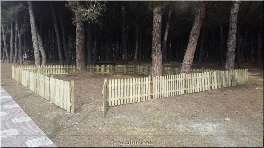 Tanques per parcs infantils tipus tanca anglesa, construïdes en panells prefabricats de fusta tractada.