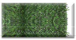 Seto bicolor de fulla fina i tupida sobre una malla metàl·lica de 110 línies verticals cada 3 m. S’ofereix en diferents mides i segons necessitats del client.