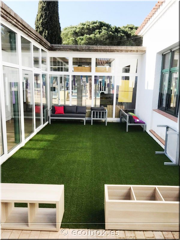 gespa artificial Migjorn sobre terrassa. Les tasques han estat realitzades per